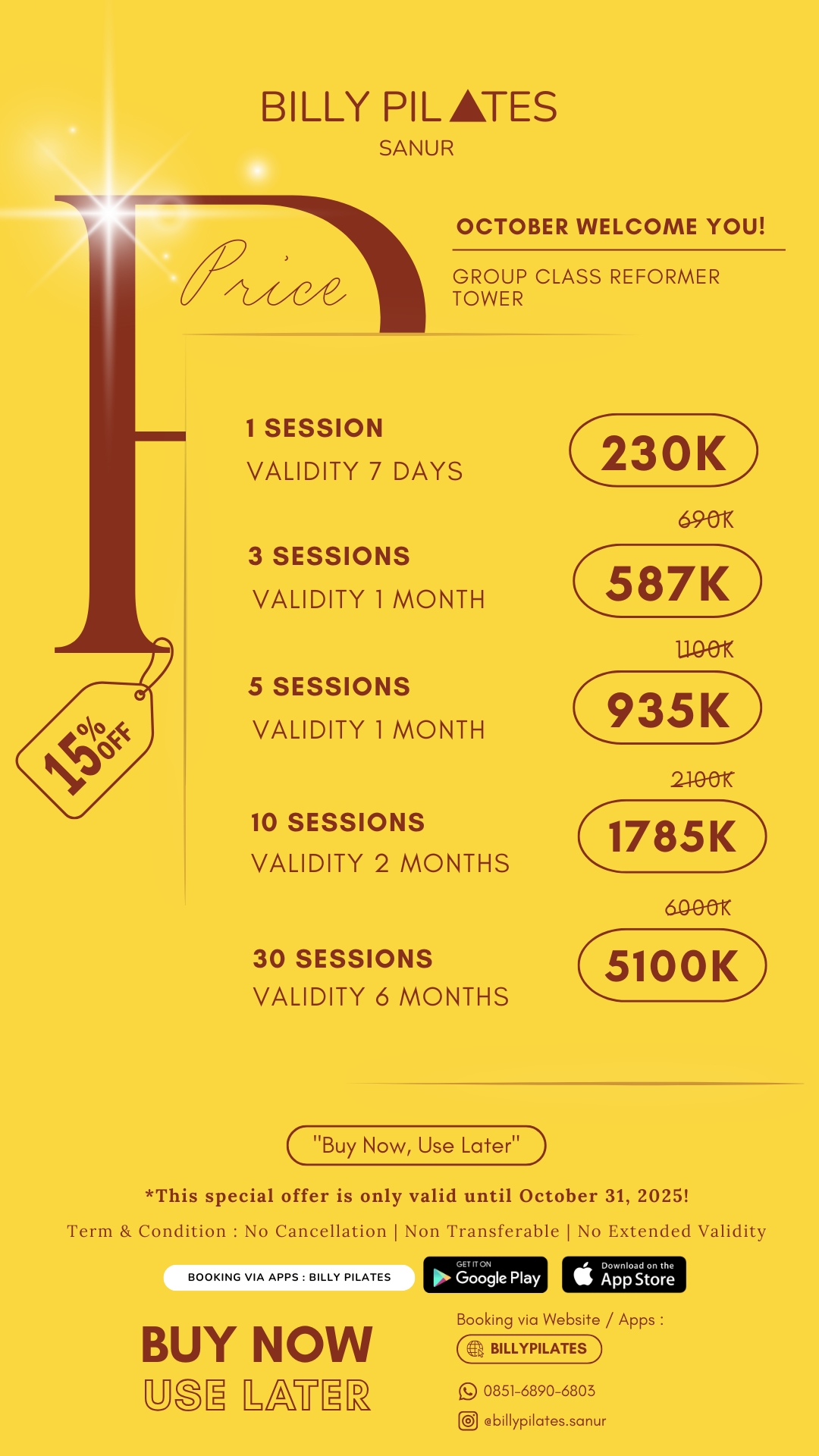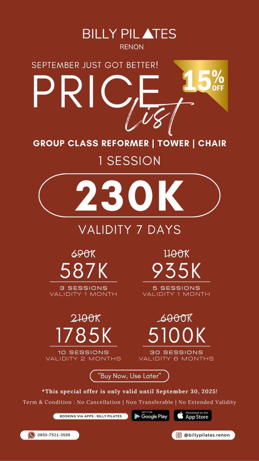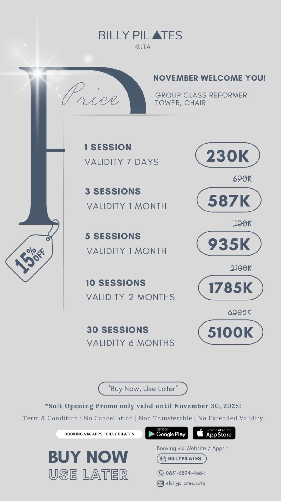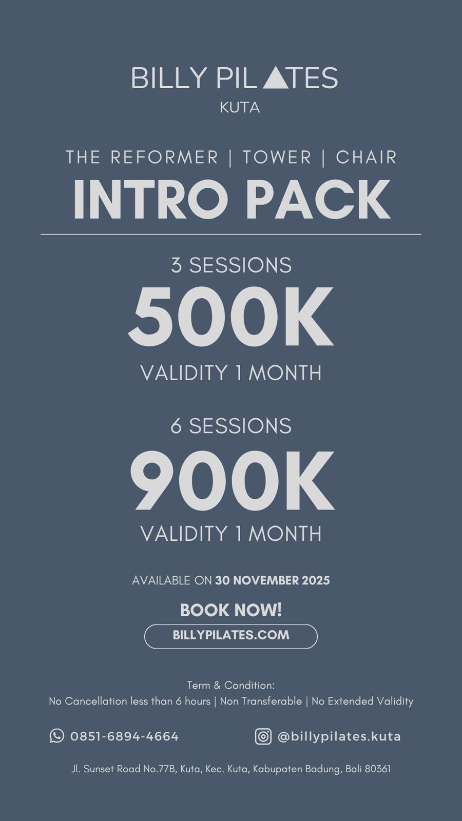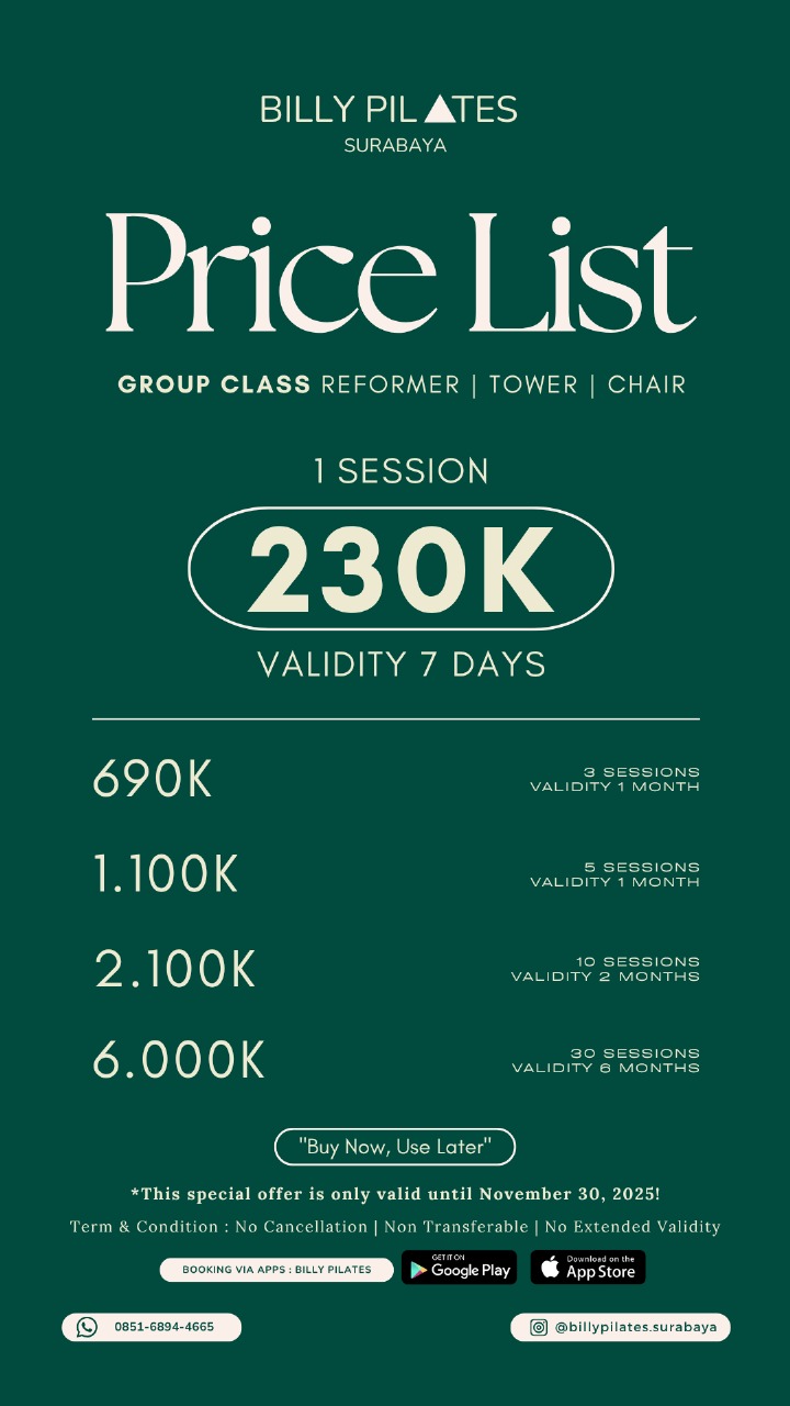 REFORMER, TOWER & CHAIR - 30 SESSIONS