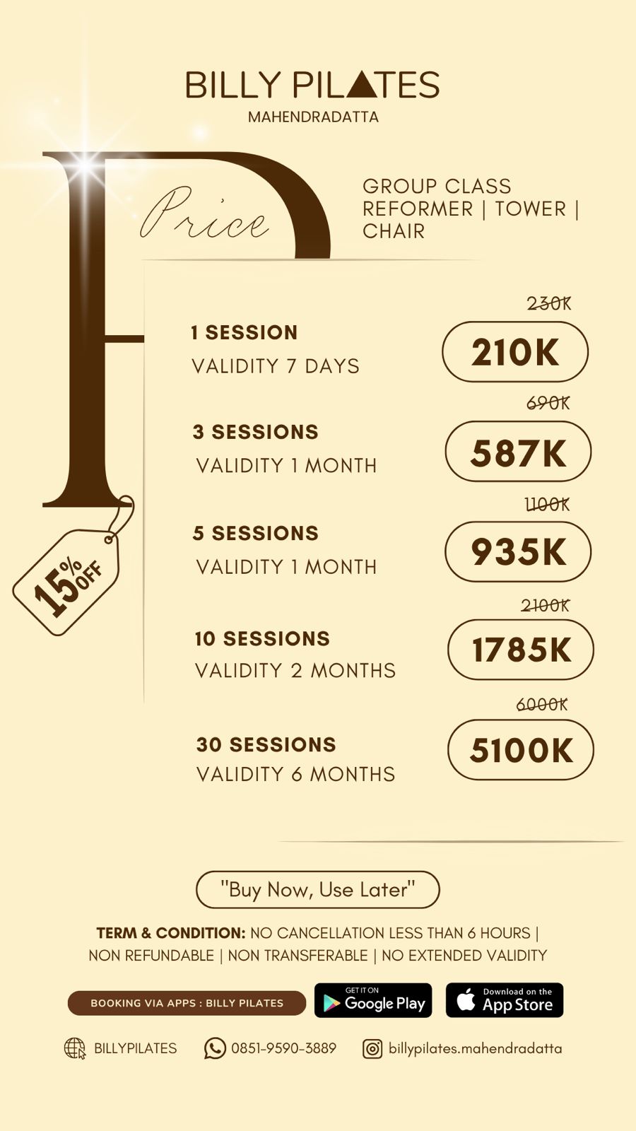 REFORMER, TOWER & CHAIR - 5 SESSIONS